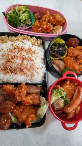 二人が高校生になって 1週間ちょっと経ちました 朝のお弁当は4人分 それは今までと変わらず、、、 ご飯は別の容器にあります あと卵焼きを追加します こういうのが朝のスタートですね 朝は子供たちの朝ごはんから作ります 温めたフライパンにソーセージを…